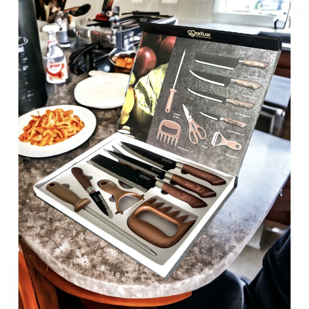 Kit de Facas para Churrasco e Cozinha: 8 Peças em Aço Inox com Garra e Amolador